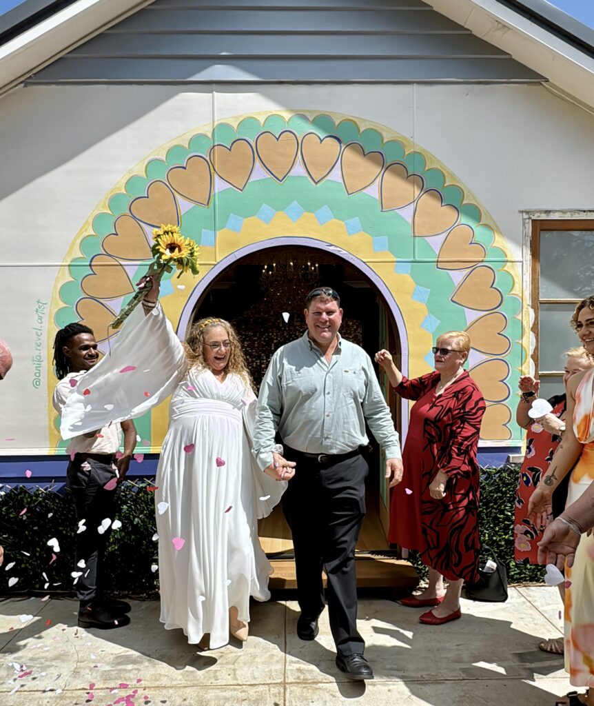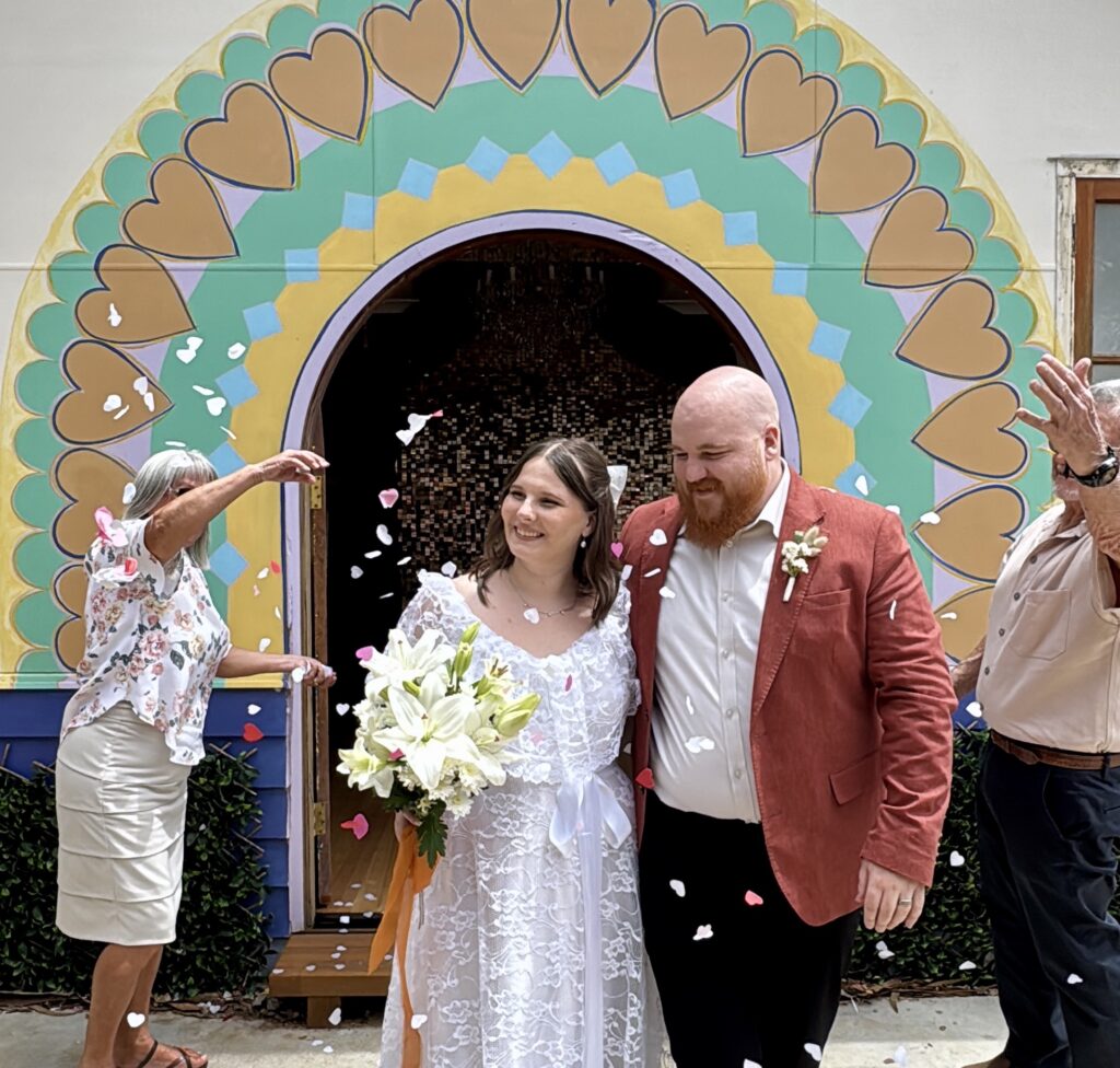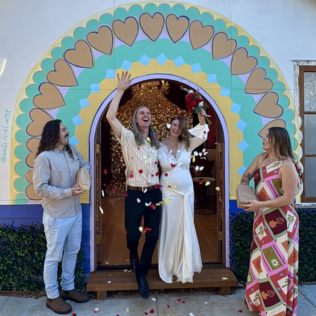 “Rainbow” medicine is a representation of the commitment between two people — their love comes from two separate places and unites in the middle to create a perfect, beautiful, symbol. Marrying under this rainbow mural is a vow to remain together through life’s challenges, and above all, to find beauty after hardship.
